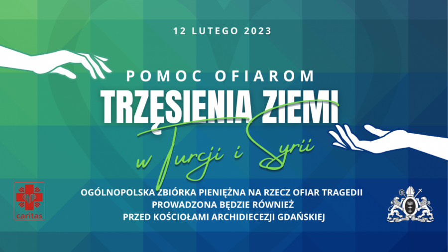 Odpowiadając na sytuację osób dotkniętych tą tragedią, w niedzielę 12 lutego 2023 r. w kościołach Archidiecezji Gdańskiej, także w naszym kościele, będą zbierane fundusze na rzecz osób dotkniętych kataklizmem.